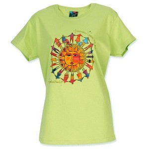 Laurel Burch Harmony Under The Sun Global People Green Short Sleeve Cotton Tee Harmony Under The Sun.Each design of Laurel Burch tee is available