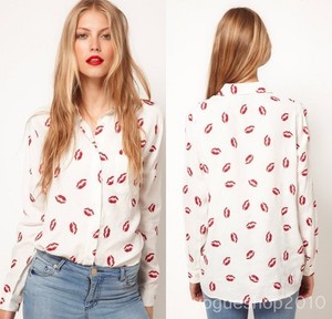 Women Collared Chiffon Long Sleeve Kiss Printed Button Down OL Shirt Blouse New in Clothing, Shoes, Accessories, Women's Clothing, Tops & Blouses | eBay