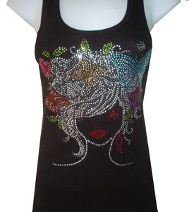 RHINESTONE GIRL WITH BUTTERFLY & FLOWER TANK TOP BLACK SIZE:S,M,L,XL,TSHIRT TOPS in Clothing, Shoes & Accessories, Women's Clothing, T-Shirts | eBay