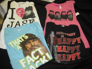 Women's Assorted Duck Dynasty T-Shirts-Jase/Si/Phil/Happy Happy Happy. - ahow old are the kids on buckwqild - what new summer shows 2013 - kay robinson
