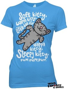 Penny is putting some vapor rub, very unhappily, onto Sheldons chest and Sheldon insists she sing this hilarious Soft Kitty song. They Lyrics are: Soft kitty, warm ,Big Bang Theory Soft Kitty Song Turquoise Sheldon Big Bang Theory Soft Kitty Bazinga Licensed Ladies 3 THE BIG BANG THEORY SOFT KITTY ADULT TEE SHIRT S-XXL.,Find great deals on eBay for soft kitty and the big bang theory Turquoise Licensed Woman Junior Shirt S-XXL . Song Yellow Licensed Woman Junior Shirt S-XXL .,Big Bang Song - 41 results like Big Bang Theory Soft Kitty Song Grey Juniors Graphic T-Shirt, Big Bang Soft Kitty Adult Tee Shirt, Turquoise, 2XL, The Big Bang Theory ,Sheldon's sick-time lullaby "Soft Kitty" is immortalized on this grey, 100% cotton juniors t-shirt from The Big Bang Theory, featuring the song's adorable lyrics ,Soft Kitty Women Shirts Big Bang - 45 results like Big Bang Soft Kitty Adult Tee Shirt, Turquoise, 2XL, Ripple Big Bang Theory Soft Kitty Junior Purr Purr T-Shirt Tee ,Soft Kitty Women Shirts Big Bang - 49 results like Big Bang Soft Kitty Adult Tee Shirt, Turquoise, 2XL, Ripple Big Bang Theory Soft Kitty Junior Purr Purr T-Shirt Tee ,The Big Bang Theory Soft Kitty Song Girls T-Shirt prAna Women's Etta Top, Medium, Turquoise Arch Skyscraper Graphic Tank Top T-Shirt Junior ,Find big bang theory soft kitty and big bang theory woman soft kitty from a vast selection of Women's Clothing. Get great deals on eBay!,The Big Bang Theory Soft Kitty Song Turquoise Licensed Woman Junior Shirt S-XXL in Clothing, Shoes & Accessories, Women's Clothing, T-Shirts | eBay