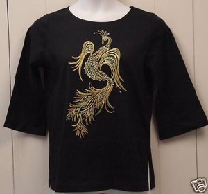 Bob Mackie Fantasy Peacock Embroidered Tee Size M-Black in Clothing, Shoes & Accessories, Women's Clothing, T-Shirts | eBay
